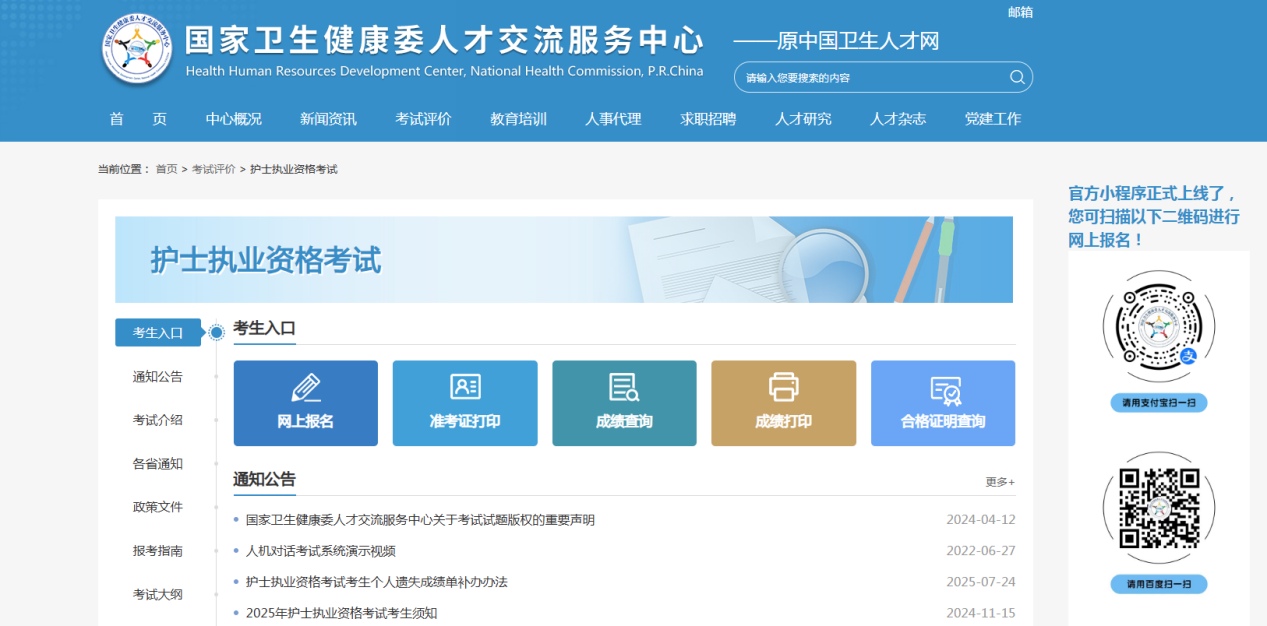國家衛生健康委人才交流服務中心 > 護士執業資格考試 > 考試入口